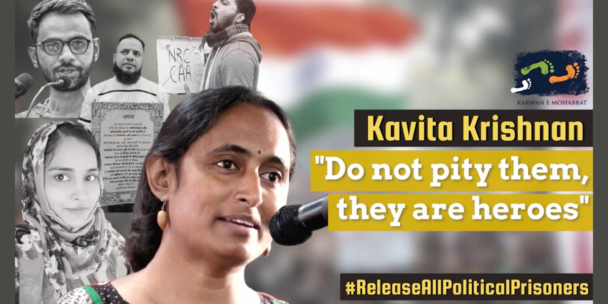 “The one judge, ASJ Vinod Yadav, who asked questions of Delhi police and gave bail to those wrongly accused has been shifted. They have predetermined who they want to arrest. Scrap the UAPA law! Release Gulfisha! ” says Kavita Krishnan, exposing the bias of the state against those who dare to protest.